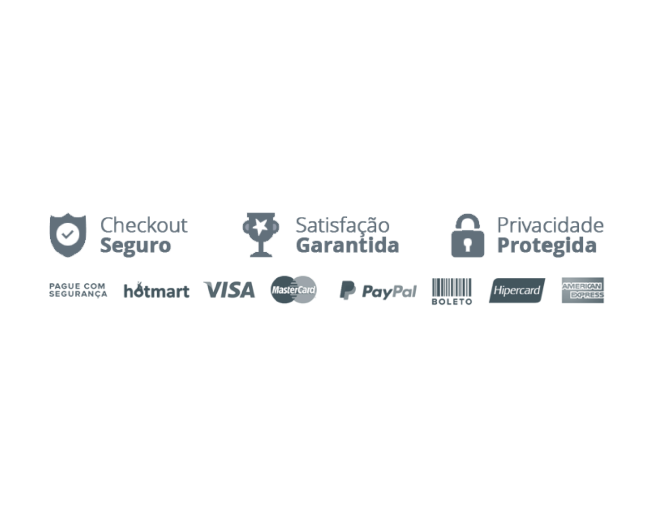 O pagamento é realizado através da Hotmart. Maior e mais segura plataforma de pagamentos do Brasil. Seus dados são protegidos e sua compra é 100% segura.