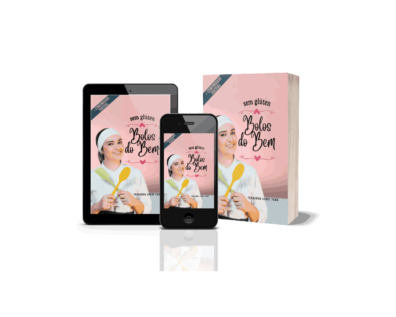 Você vai ter acesso ao E-book (livro digital) “Bolos do Bem: Sem glúten”, mais o E-book bônus “Sobremesas para Celebrar!” mais bônus extras.